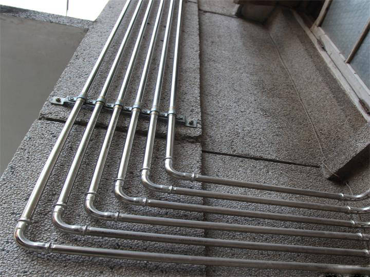 以常用的304不銹水管為例,其抗拉強度為520~750mpa,是鍍鋅管的2倍,銅管3倍,PPRT管的8~10倍。 不銹鋼水管平均熱膨脹系數(shù)為0.017㎜/(m·℃),與銅管較接近,而復(fù)合管是不銹鋼水管的1.5倍,塑料管是不銹鋼水管的5~11倍。鑒于塑質(zhì)管熱膨脹系數(shù)過大的弱點,輸送熱水應(yīng)以金屬管為宜。 不銹鋼水管熱導(dǎo)率為15w/m·℃(100℃),是鋼管的1/4,銅管的1/23。不銹鋼水管由于保溫性能好,特別適用于熱水輸送。