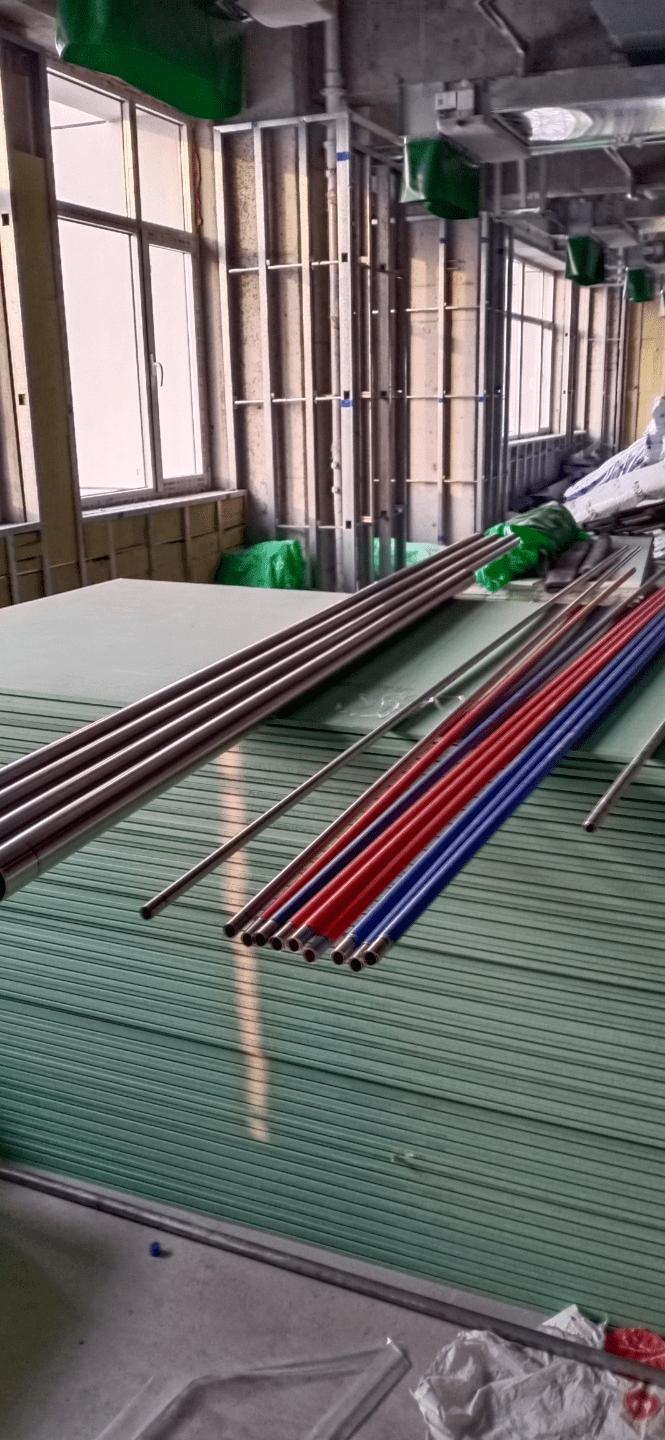 本次項目主體為該院在建病房樓給排水工程。該病房樓共計12層,建筑面積21600平米。項目采用久潤利華雙卡壓式不銹鋼水管,應(yīng)用產(chǎn)品型號為DN15-DN65。該工程主要由久潤利華—臨淄代理王俊永參與,全程包括材料供應(yīng),施工安裝及總公司提供的技術(shù)指導(dǎo)。工程主要涉及醫(yī)療類建筑物供水管道系統(tǒng)的冷熱水供應(yīng),直飲水等板塊。不銹鋼水管安全、無毒、無腐蝕、無滲出物、無異味、無渾濁,不會對水質(zhì)造成二次污染,能夠保持水質(zhì)純凈衛(wèi)生,適用于各大醫(yī)療類建筑。 點評:大型醫(yī)療綜合體涉及醫(yī)用軟水、直飲水、生活用水等多種品質(zhì)要求,用水量大,品質(zhì)高,要求管道可靠性高,易維護(hù),宜選用不銹鋼管道作為供水管材。 以下為部分施工現(xiàn)場圖片
